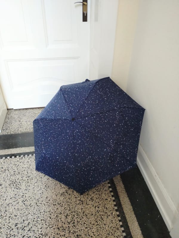 Ich war vormittags kurz mal "drüben". Stehtische aufstellen, Stühle rumtragen und Luftballons aufblasen. Das Handy lag im Büro, aber draussen war es sehr, sehr nass. Bah! Daher Symbolbild Regenschirm.