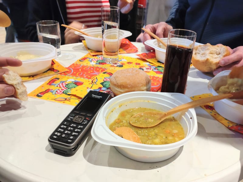 Karnevalsfeier auf der Arbeit. Hier eine Tradition. Ich werde nicht am Ausschank gebraucht (da wäre der Hut zum Einsatz gekommen), sondern kann mit den Kollegen was essen und quatschen bzw. sie anschreien. Danach genieße ich die Ruhe meines Büros.
