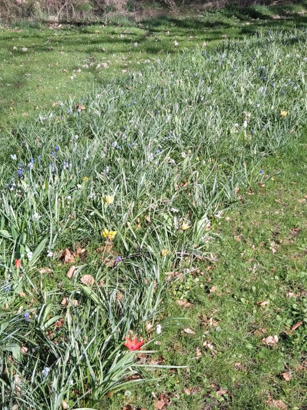 Und auch auf der Wiese muss bereits ordentlich was los gewesen sein. Die vielen Blumen konnte ich allerdings nur im Wochenblatt bewundern. Als ich da war, waren da nur noch vereinzelte Tupfen. Zähle ich aber mal weniger unter "Natur" als unter "Erlebnis". Da wurde halt ein ewig langer Streifen Zwiebeln gesetzt, damit die Leute was zu gucken haben. Hübsch aber sicher allemal.