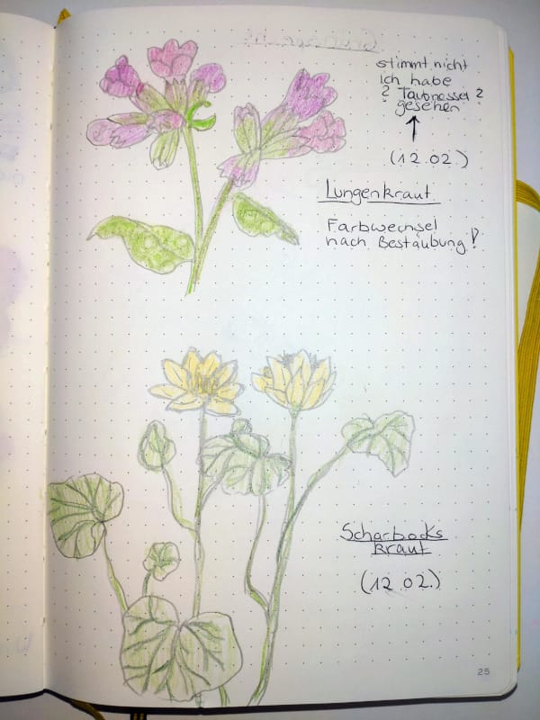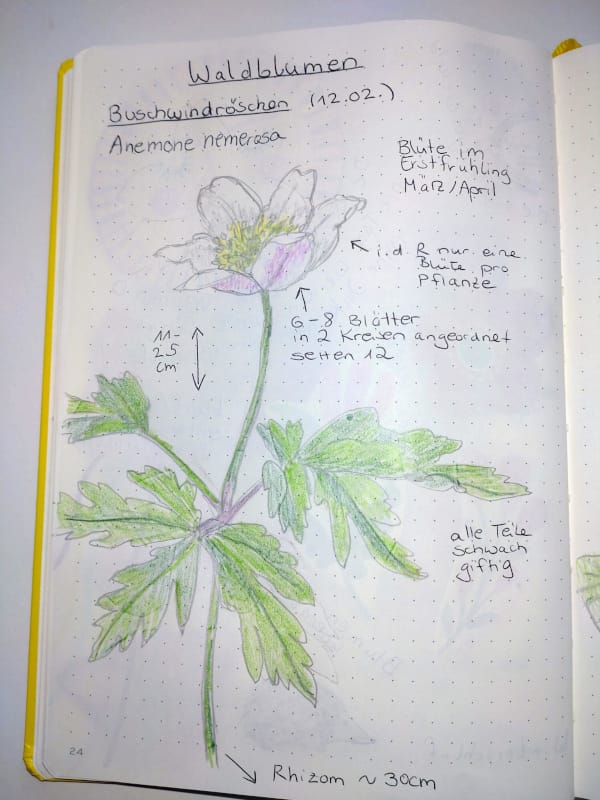 Die Zeit, die Zeit... aber die Blümchen, die ich im Wald gesehen (oder auch nicht gesehen) habe, habe ich gezeichnet. Eigentlich hatte ich mir noch einen Grünspecht und einen Zilpzlp vorgenommen, es aber nicht geschafft. Was ich aber gemacht habe, ist den Gesang "zu lernen". Ich finde, der Grünspecht hat was von einer Lachmöve und sorry, aber der Zilpzalp macht für mich echt nicht "zilp zalp". Als ich gedanklich davon weg (und sie aus dem Süden zurück) war(en), habe ich sie auch erkannt.