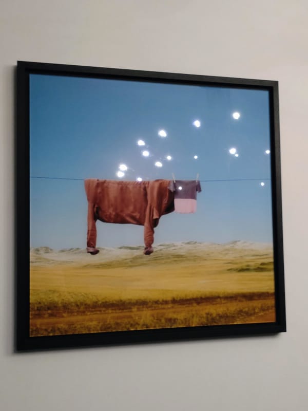 Je nachdem wo man bei uns am Esstisch sitzt spiegelt sich der "Kronleuchter" in unseren Bildern. Dann sieht es fast schon so aus als würde die Wäschekuh gleich von einer Flotte Ufos entführt.