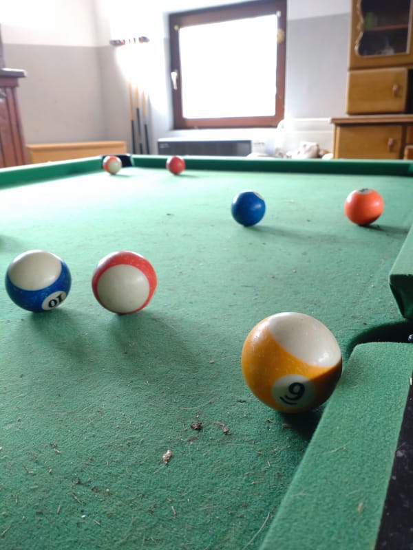 Allgemein spiele ich aber auch eher weniger. Wir haben zwar Gesellschaftsspiele, aber die liegen meistens im Schrank. Daher heute: der Billardtisch.